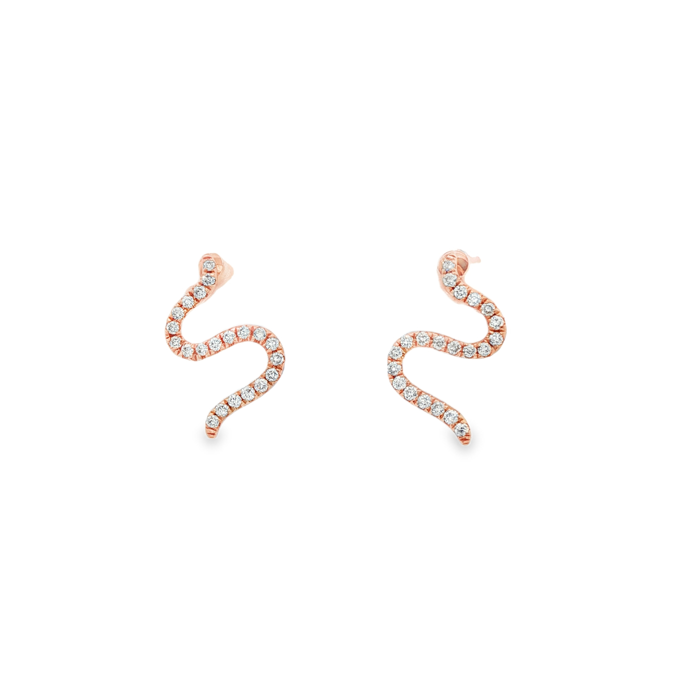 Handgefertigte elegante Diamant Schlangenohrstecker aus Roségold. Die Ohrstecker sind aus 750f Roségold gefertigt und mit insgesamt 0.18ct Diamanten besetzt.