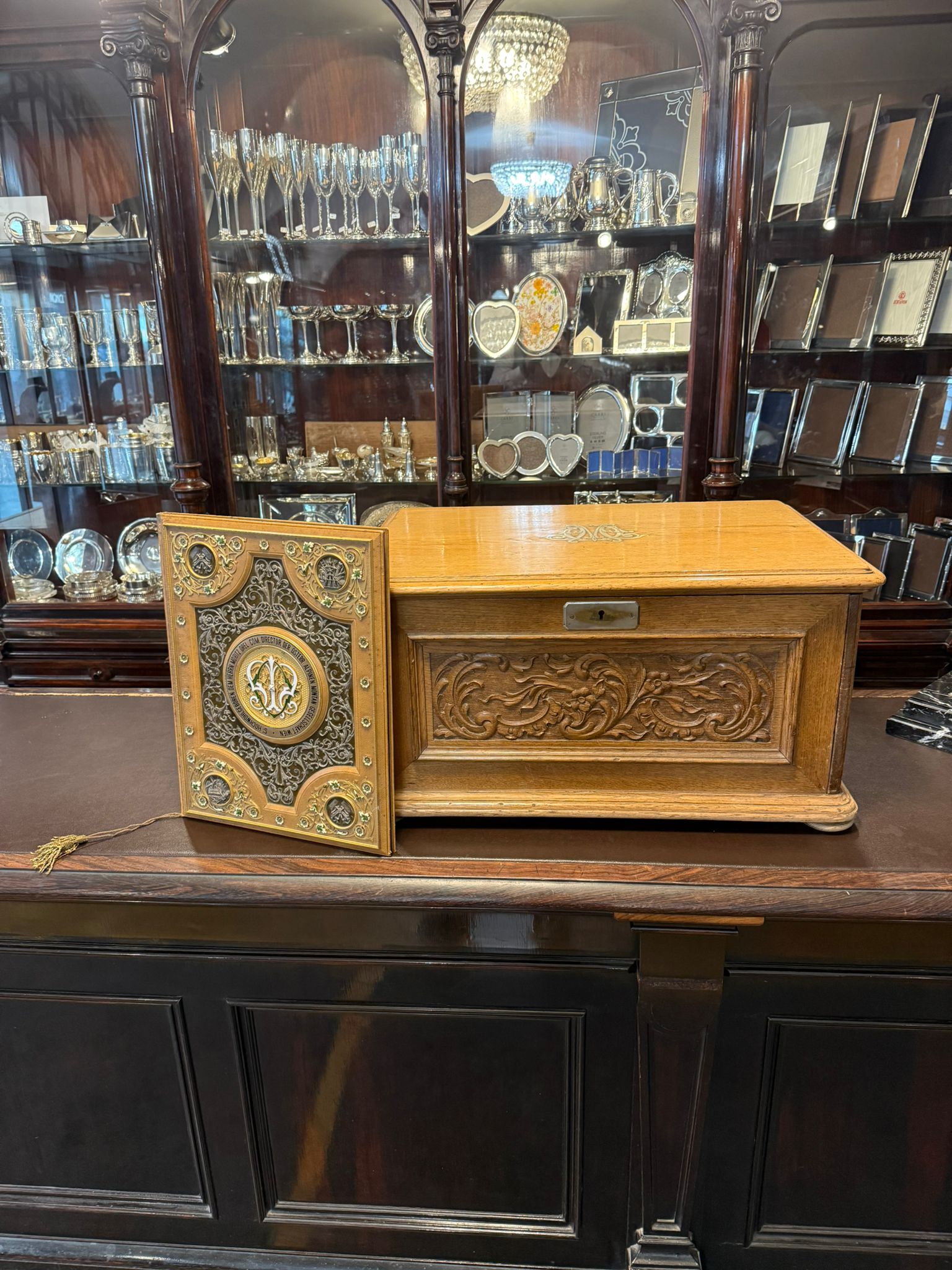 Antikes Silberbesteck in original Kassette mit Buch 800f Silber.